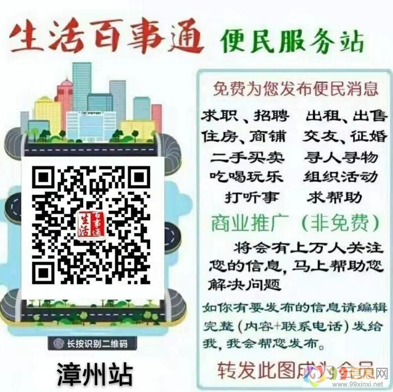 漳州生活百事通是一个基于地方信息发布和推广的企业,因此朋友圈中的好友也都是本地人群,通过免费发布交友找对象、招聘求职、房屋租售、二手物品交易、顺风车、活动组织、吃喝玩乐等信息,漳州生活百事通吸引了上万本地居民,在添加了微信后,这些居民就成为推广的目标群体。当任何产品和企业有推广需求时,百事通就可以将推广信息发布到朋友圈中,潜在客户就会获得这些信息欢迎www.99xinxi.net。如此一来,居民获得生活资讯,企业获得精准推广人群,百事通得到大家的认可和信任,这就是由百事通打造的一种多方共赢的和谐局面。